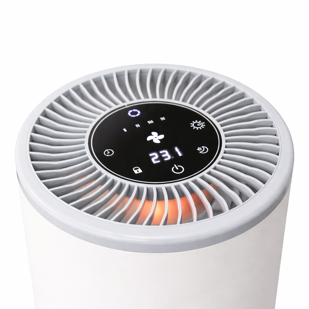 Vores luftrenser er udstyret med et H13 HEPA-filter, som også indeholder et aktivt kulfilter, der effektivt fjerner støv, pollen, allergener, lugt og andre skadelige partikler fra luften. Vi tester alle vores produkter grundigt for at sikre, at de lever op til høje standarder for effektivitet. Desuden har vi 100 dages tilfredshedsgaranti, så hvis du fortryder, kan du uden problemer sende produktet retur.